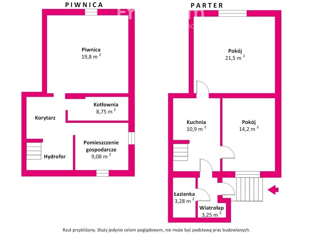 Całość domu jest podpiwniczona. Piwnica jest sucha, daje duże