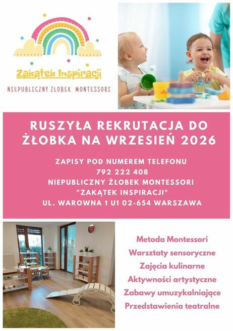 Przedszkole nr 212 na warszawskim Żoliborzu przyjmie dzieci z roczników: 2022 (2 miejsca), 2021 (2 miejsca), 2020 (1 ...